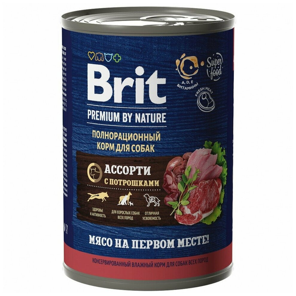 Консервированный корм BRIT PREMIUM BY NATURE DOG для взрослых собак всех пород ассорти с потрошками (410 гр х 9 шт)