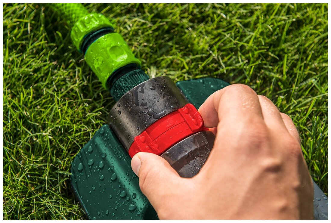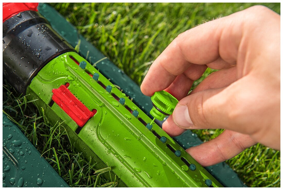 Лучшие цены. Дождеватель маятниковый VERTO (арт. 15G772) изготовлен из прочного материала, устойчивого к повреждению. Обеспечивает удобный полив территории площадью до 418 м2. 18 форсунок распределяют струи воды по территории, по форме соответствующей прямоугольнику, а возможность регулировки положения форсунок позволяет задать не только диапазон, но также и ширину полива. В набор входит игла для прочистки форсунок. Магазины в вашем городе.