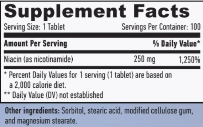 Аминокислоты Niacin Time Release, 250 мг / 100 таблеток