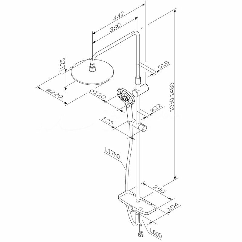 | Комплектация | ручной душ / верхний душ / смеситель / стойка / штанга / душевой шланг / крепление ручного душа |
