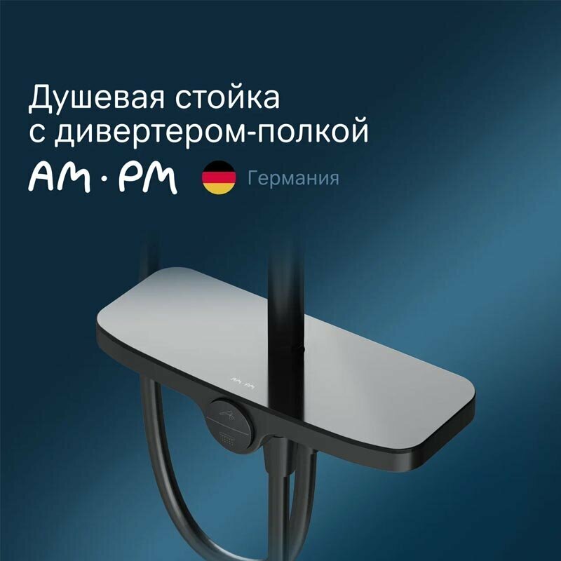 Душевая система Душевая система AM.PM Like F0780222 черный, Simple Switch Push, нажимной, верхний душ 220 мм
