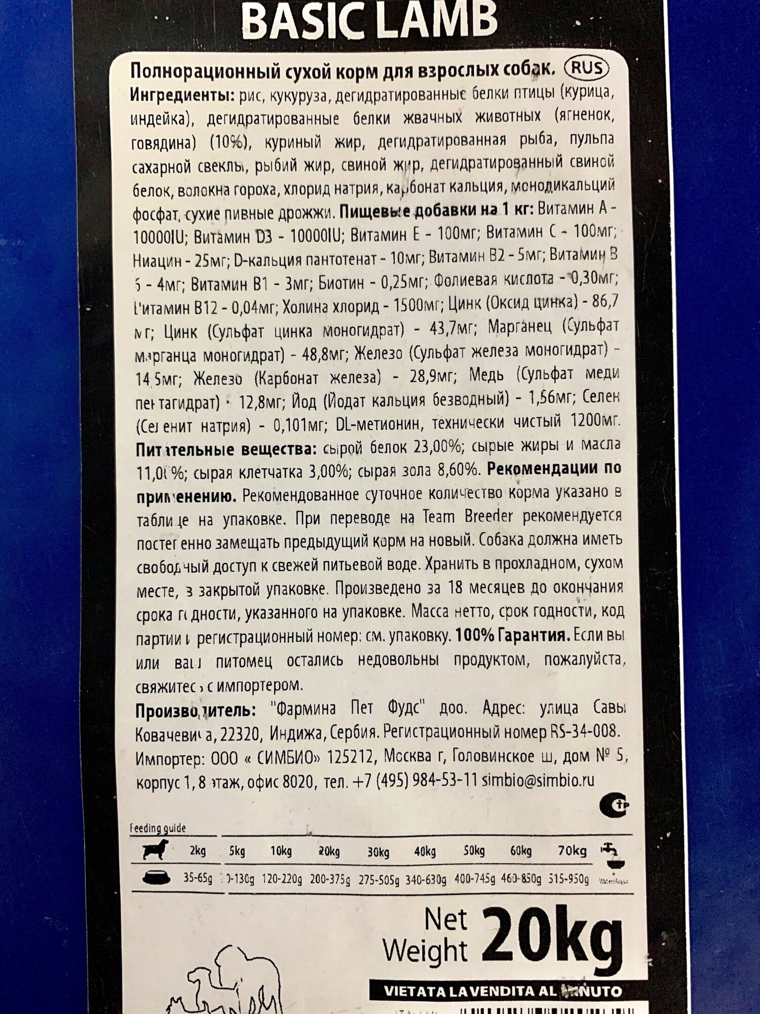 Корм для собак Farmina 20 кг Team Breeder Maintenance сухой корм для собак всех пород (Курица)