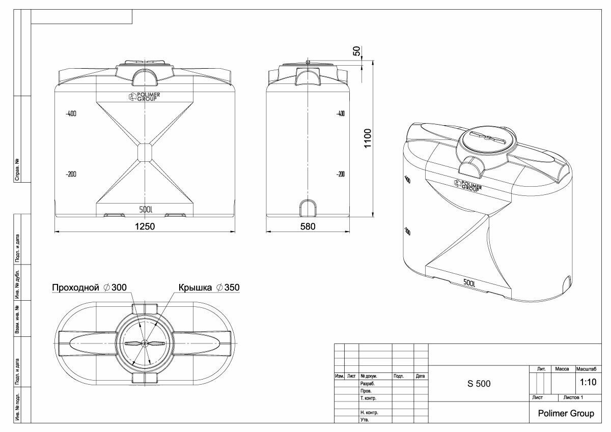 Емкость 500 литров Polimer Group S 500 для воды/ топлива, цвет синий