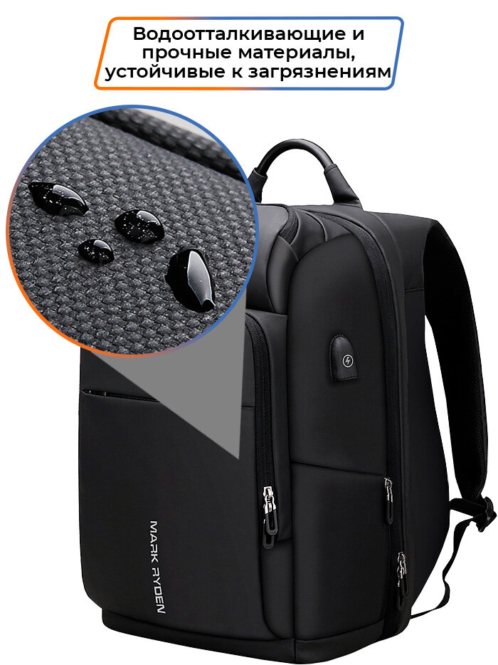 Рюкзак мужской городской Mark Ryden MR7080D дорожный большой 30л для ноутбука 17,3. Черный женский, подростковый водонепроницаемый с USB зарядкой 5 796 ₽ Подробнее