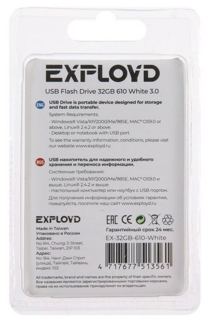 USB-флешки USB флэш-накопитель (EXPLOYD EX-32GB-610-White USB 3.0)