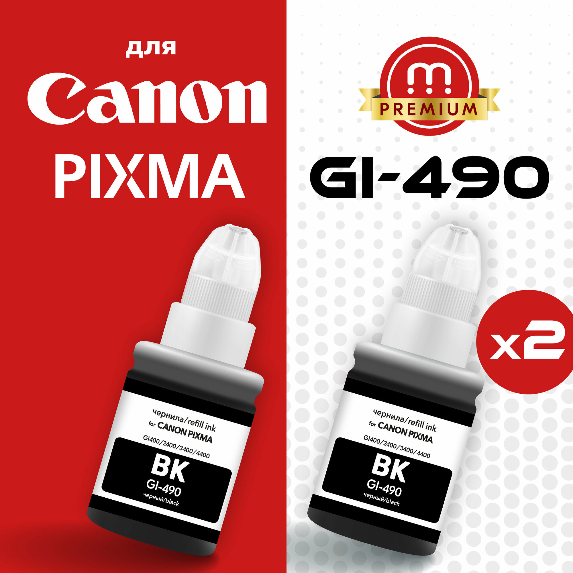 МФУ Комплект черных чернил 2шт для Canon PIXMA GI-490, краска для заправки принтера G1000 G1400 G1411 G2400 G2410 G2411 G2415 G3400 G3410 G3415 G4400 и др