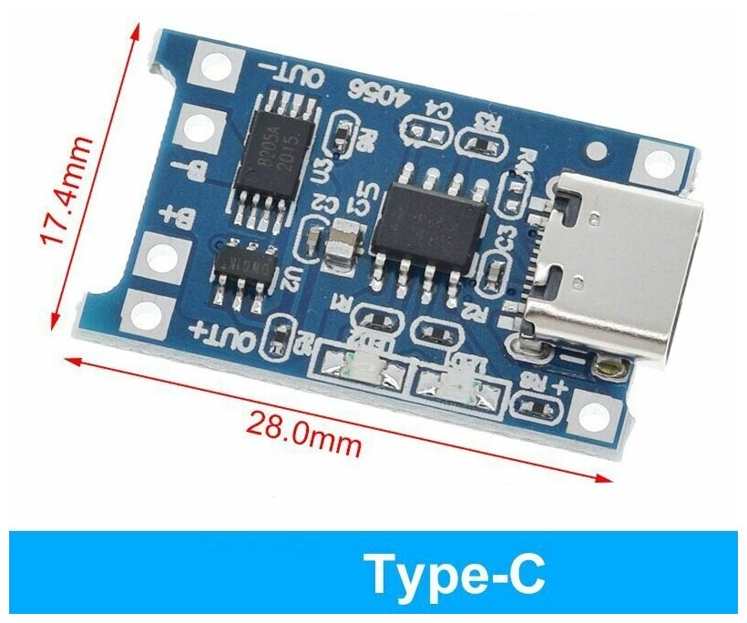 Зарядные станции Контроллер заряда Li-Ion аккумуляторов TP4056 Type-C с защитой