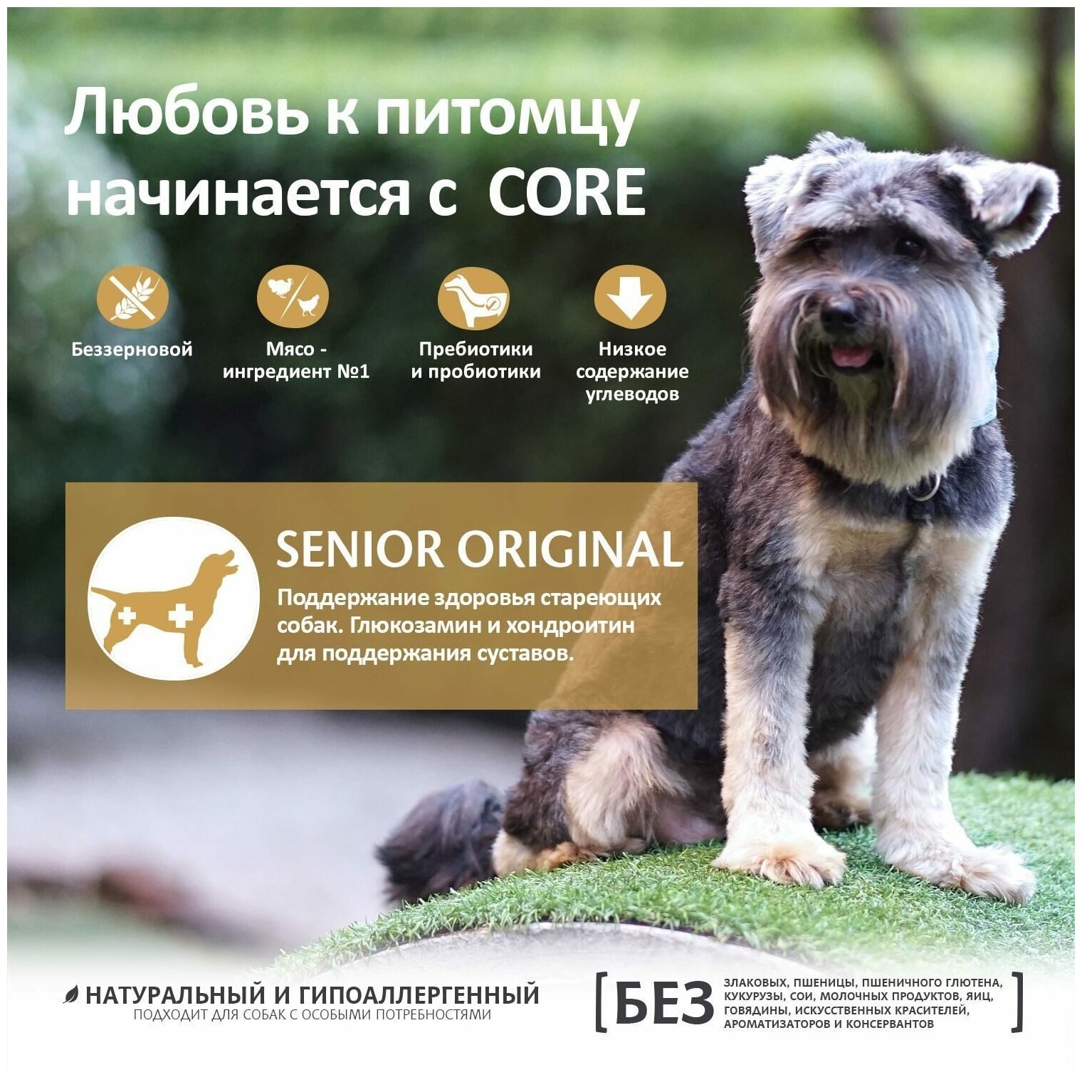 Лучшие цены. Корм Wellness CORE создан с учётом естественных потребностей домашних любимцев, которые являются хищниками по своей природе. Именно поэтому все корма Wellness CORE беззерновые и содержат свежее мясо и рыбу на первом месте во всех рационах. Каждый рацион Wellness CORE для собак обладает привлекательным вкусом, хорошо усваивается, не содержит пшеницы, клейковины, кукурузы, сои, молочных продуктов, искусственных красителей, ароматизаторов и консервантов. Магазины в вашем городе.