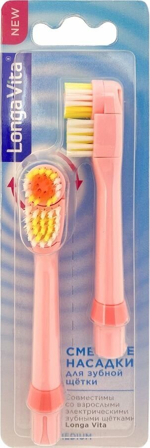 Насадки для зубных щеток Насадки сменные для электрической зубной щётки Longa Vita, щетина средней жёсткости, розовая