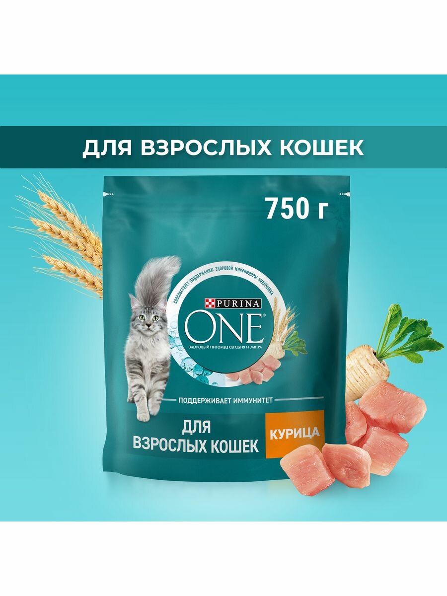 Сухой корм Purina ONE для взрослых кошек с курицей и цельным злаками, Пакет, 750 г,Для взрослых кошек