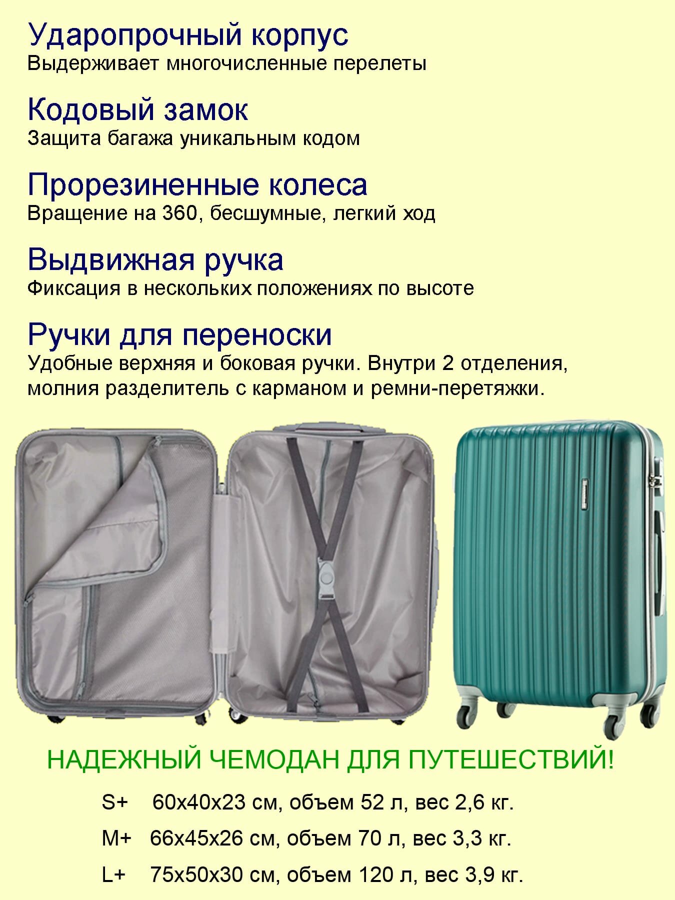 Чемодан на колесах ANANDA, средний размер М, 63 см, 60 л, изумрудный 4 499 ₽ Подробнее