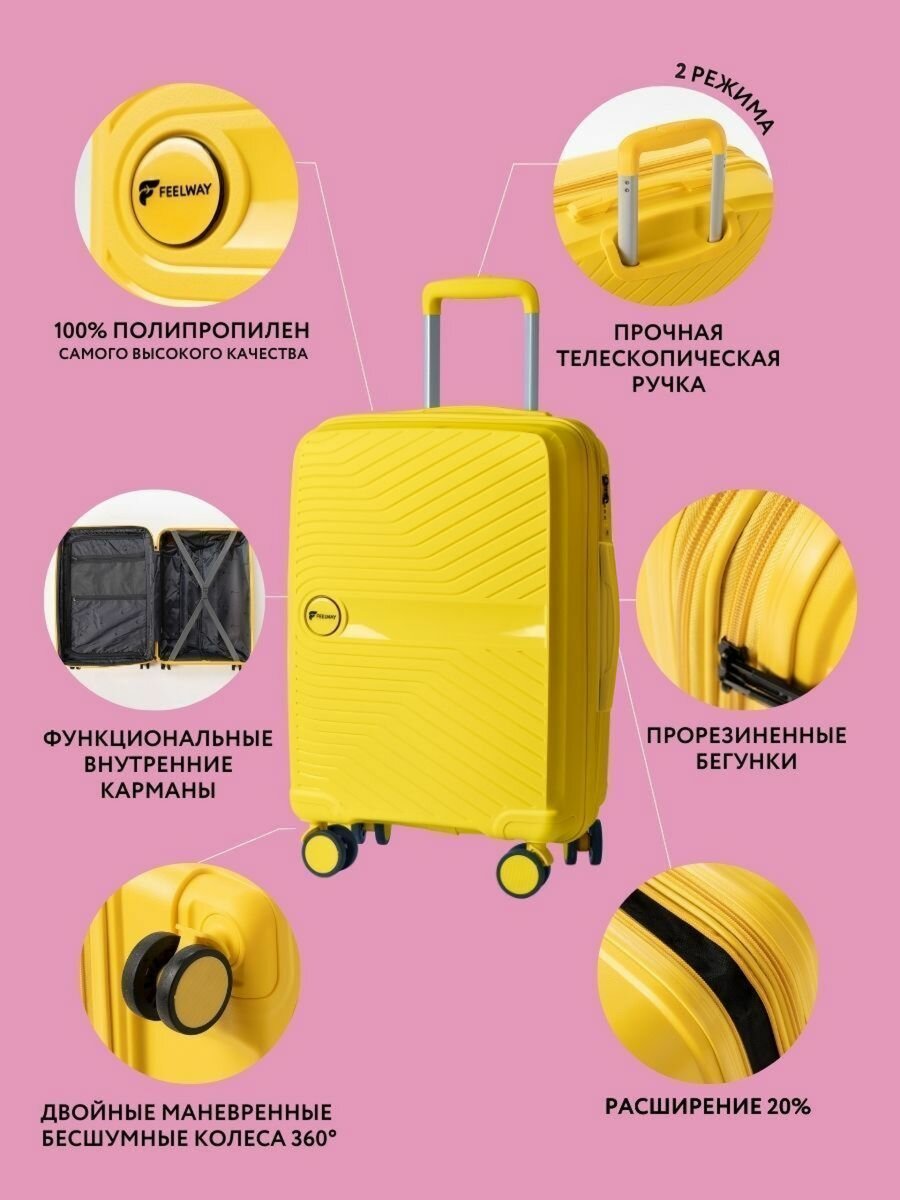 Чемодан на колесах FEELWAY, PP LUGGAGE желтый, размер S