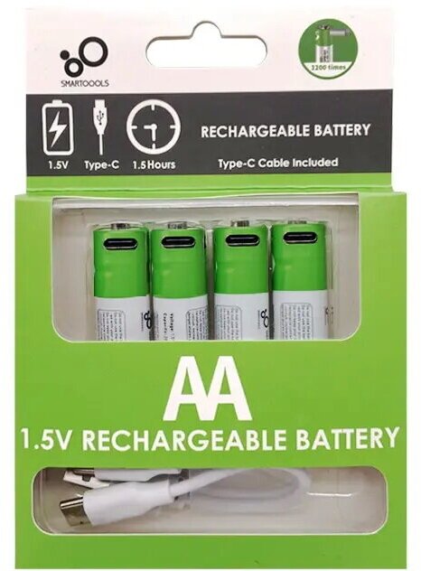 Лучшие цены. Очень удобные в использовании перезаряжаемые аккумуляторные литий-ионные Li-ion батарейки Smartoools; данные аккумуляторы можно легко заряжать с помощью обычной телефонной зарядки либо просто от компьютера (или любого устройства с разъёмом USB) с помощью шнура Type-C, который идёт в комплекте. Зарядка быстрая - всего 1.5-2 часа. В отличие от обычных батареек, аккумуляторы можно неоднократно подзаряжать (1200 циклов) и использовать вновь - тем самым экономятся ваши деньги, а также сохраняется экология. Магазины в вашем городе.