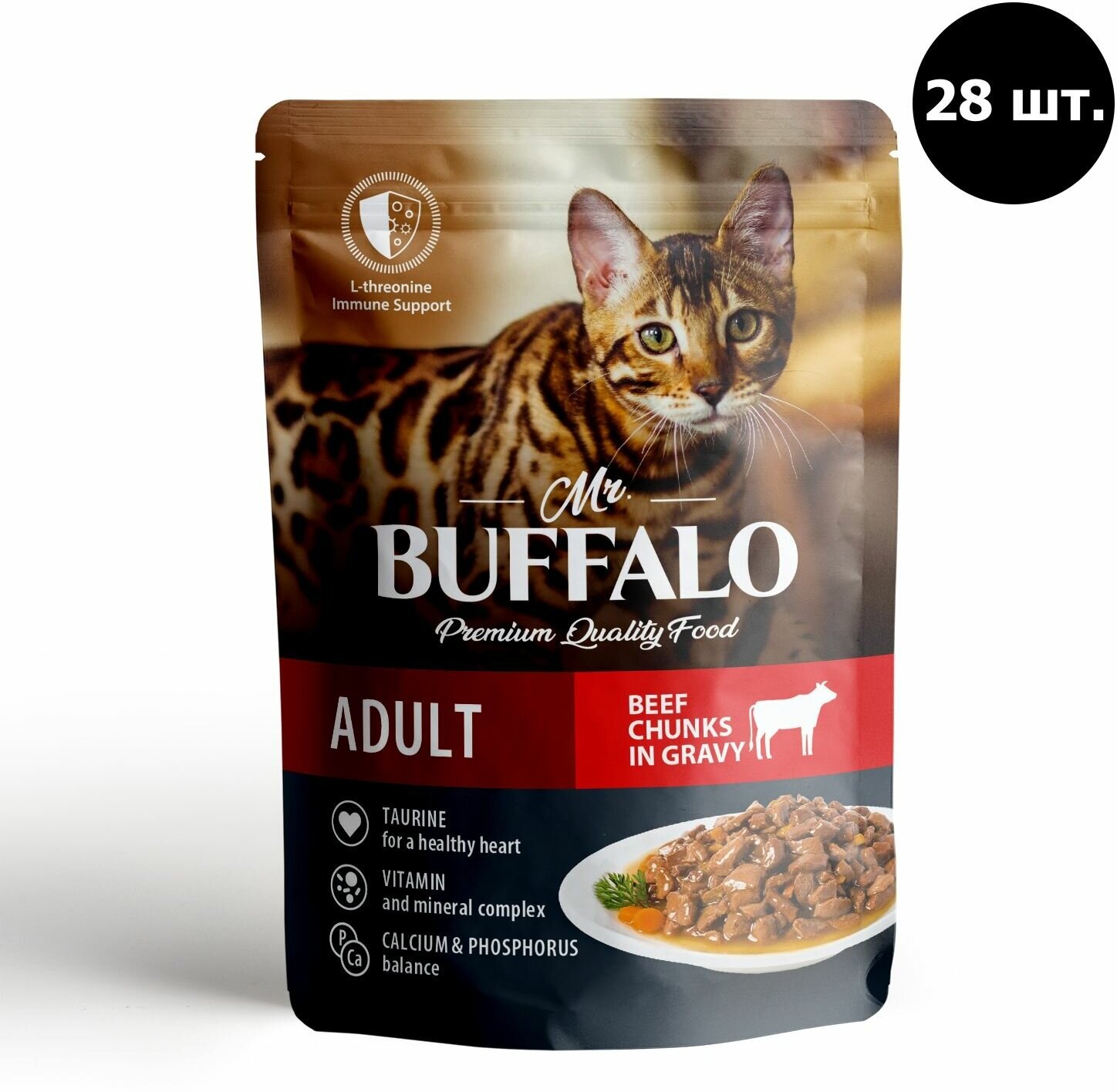 Корм для кошек Влажный корм Mr.Buffalo Adult для кошек, говядина в соусе, пауч 85 г х 28 шт