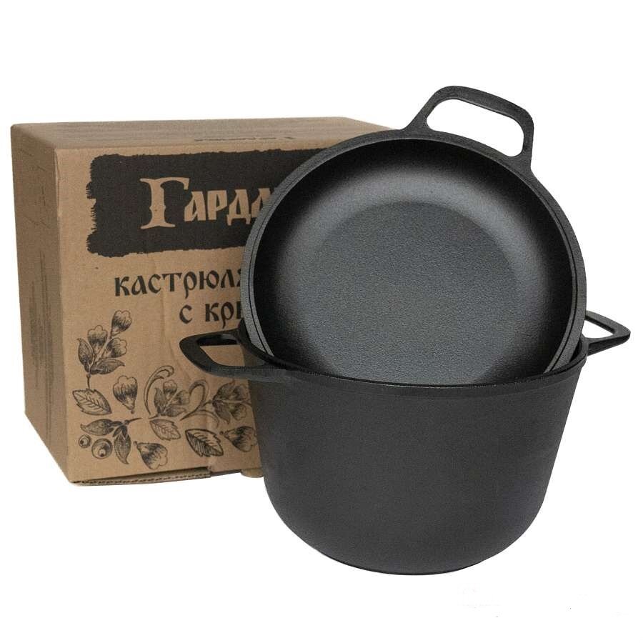 Кастрюля с крышкой-сковородой Гардарика, чугунная, 6 л