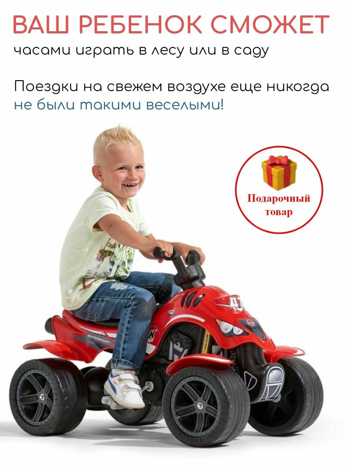Веломобили Квадроцикл с педалями и цепным приводом FALK; красный