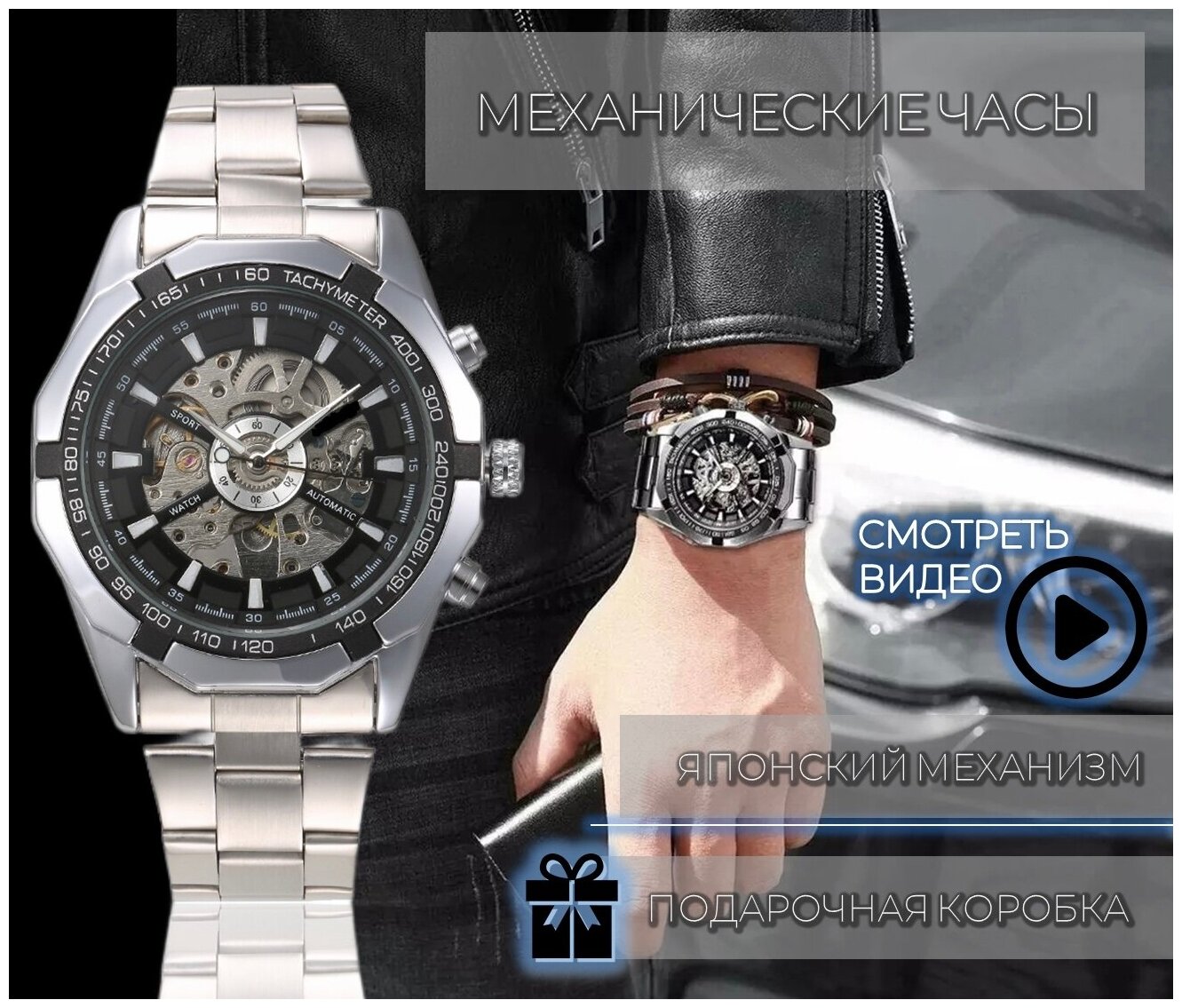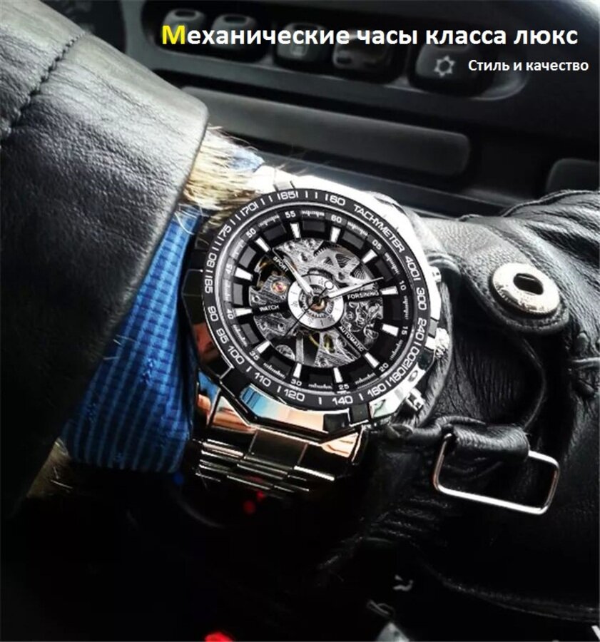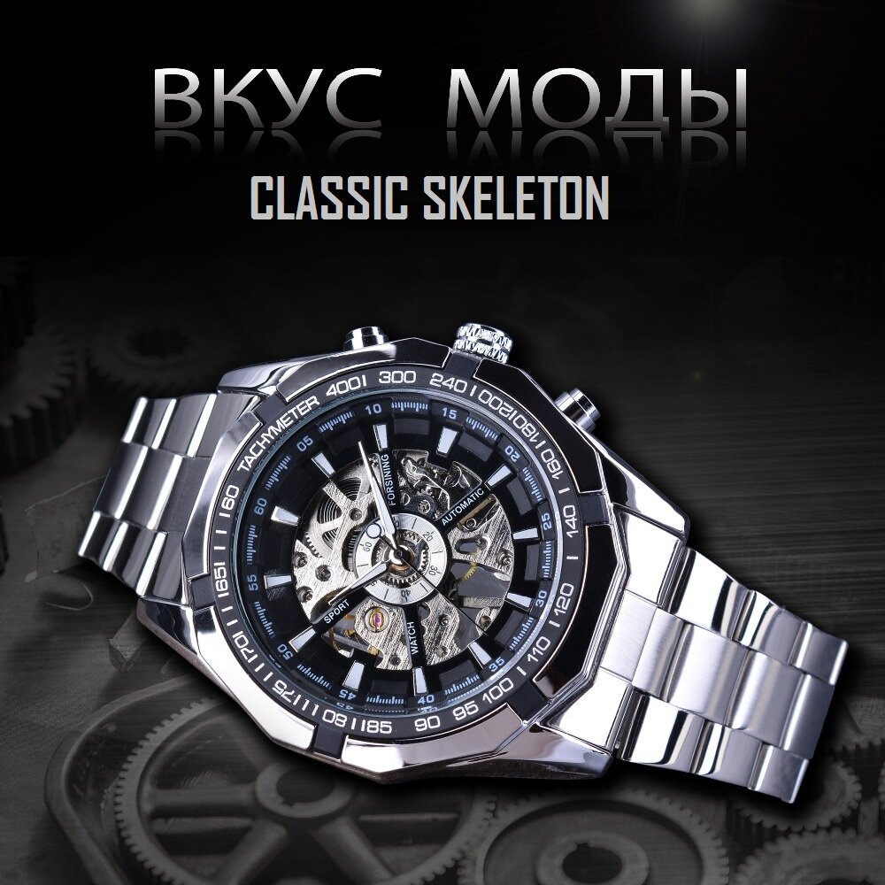 Наручные часы Часы механические мужские Forsining 340 серебристые с автоподзаводом