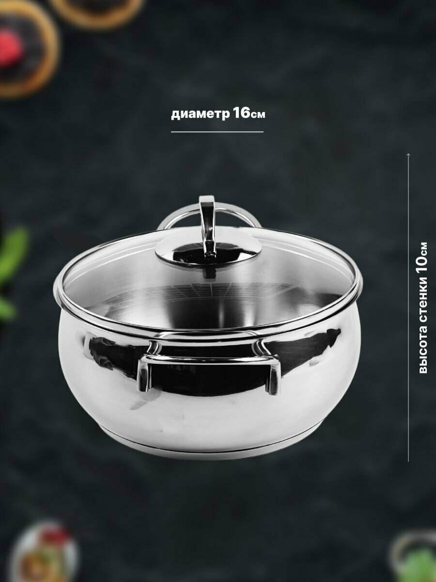Кастрюли Кастрюля с крышкой 1,8 л 16 см, из нержавеющей стали. Подходит для всех типов плит включая индукционные плиты. O.M.S. Collection.