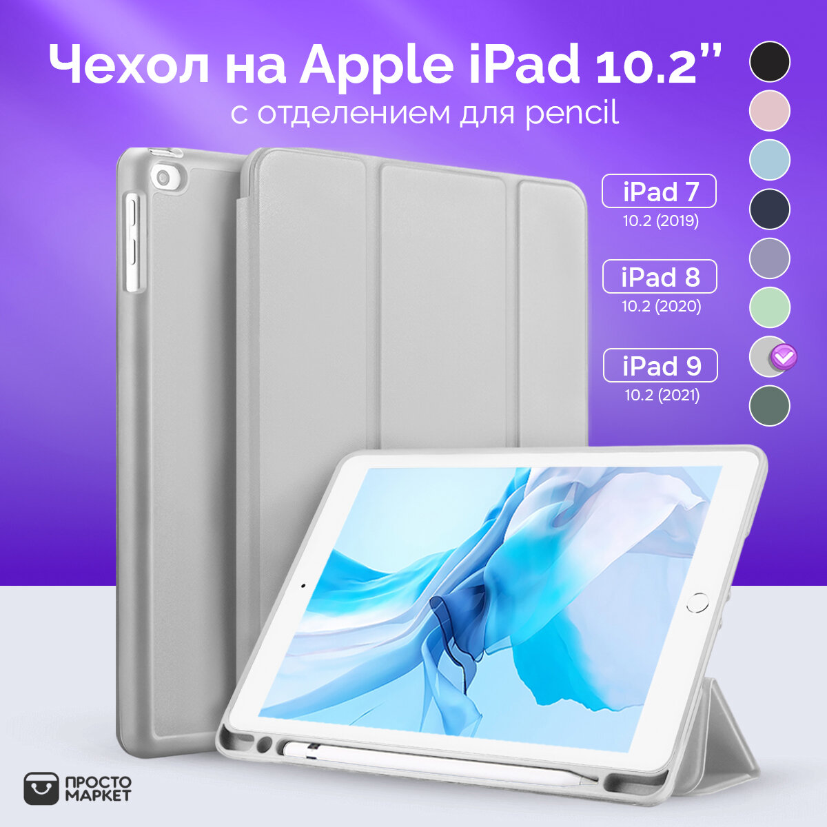 Чехлы для планшетов Чехол-обложка для Apple iPad 10.2" (iPad 7/iPad 8/iPad 9) серый/Чехол для стилуса Apple Pencil/ Чехол с подставкой/Обложка Smart Cover iPad 10.2