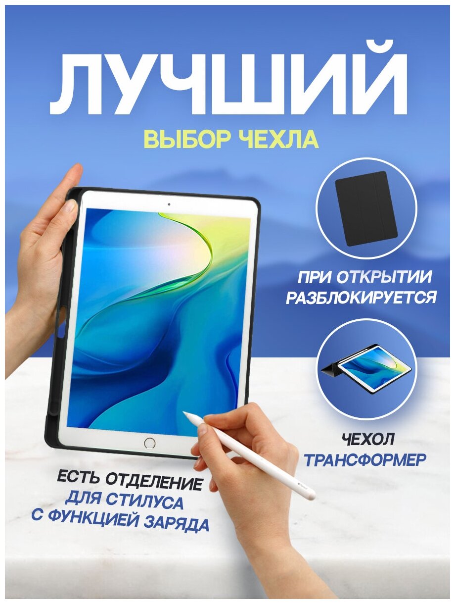 Чехлы для планшетов Чехол-обложка для Apple iPad 10.2" (iPad 7/iPad 8/iPad 9) черный/Чехол для стилуса Apple Pencil/ Чехол с подставкой/Обложка Smart Cover iPad 10.2
