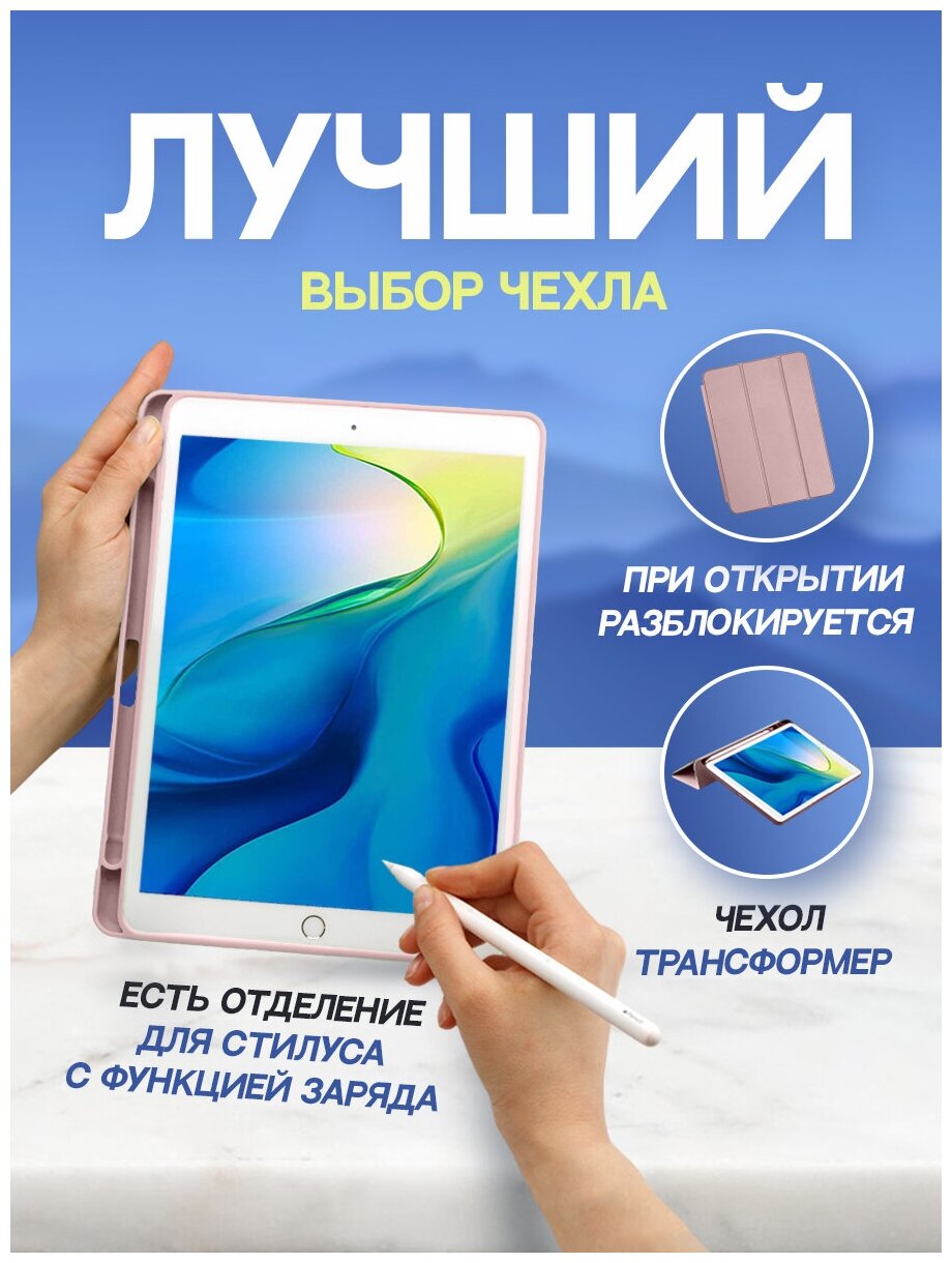 Чехлы для планшетов Чехол-обложка для Apple iPad 10.2" (iPad 7/iPad 8/iPad 9) розовый/Чехол для стилуса Apple Pencil/ Чехол с подставкой/Обложка Smart Cover iPad 10.2