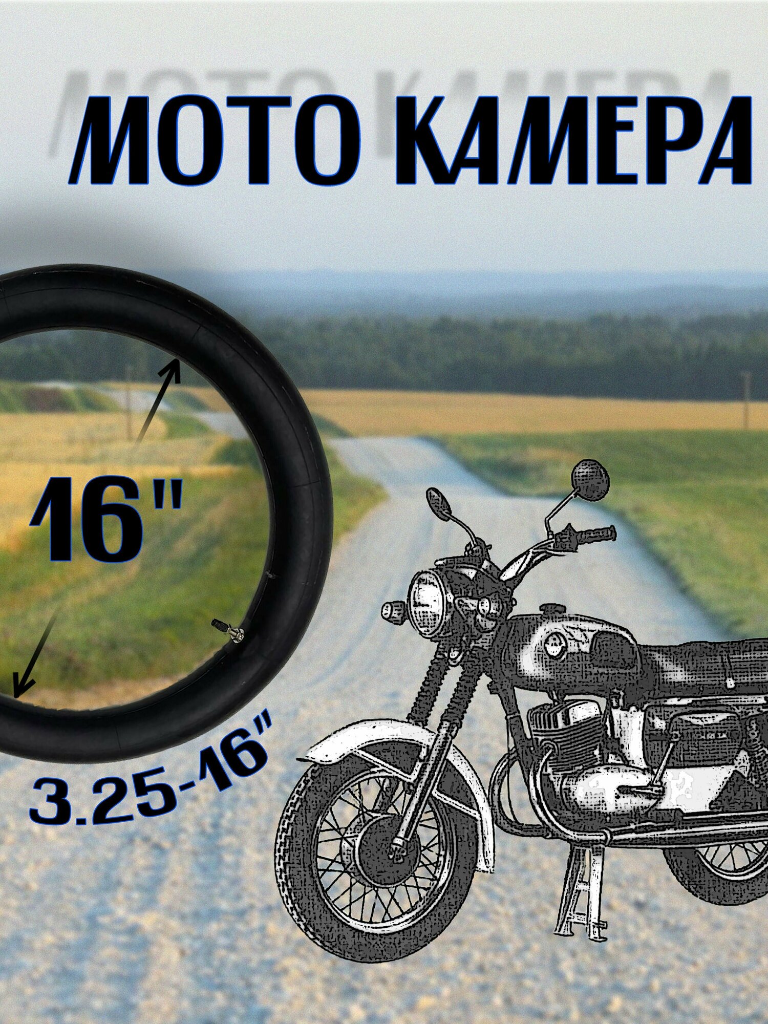 Мотошины Камера для мото 3,25-16" 2Т натуральная резина, автониппель металл