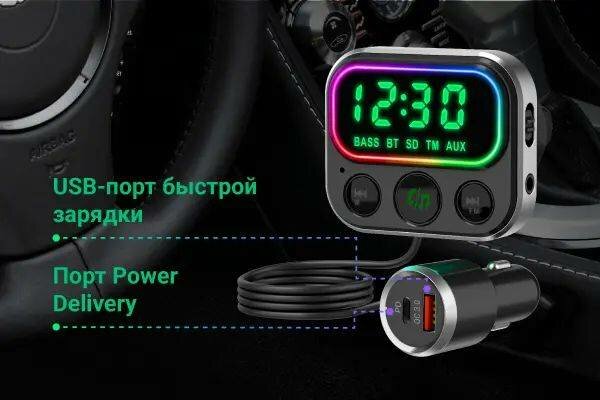 FM-трансмиттеры Автомобильный FM-модулятор Navitel BHF06 PRO черный MicroSD BT USB