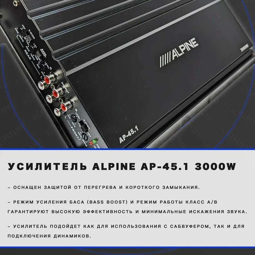 Автоусилители Автомобильный усилитель ALPINE AP-45.1, Max мощность 3000W, 4 канала, класс А/B, 40A