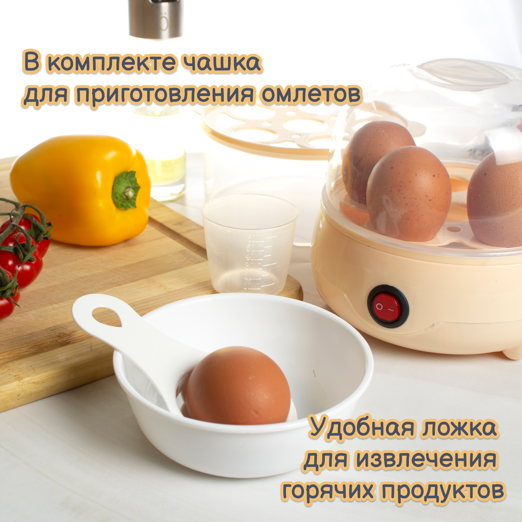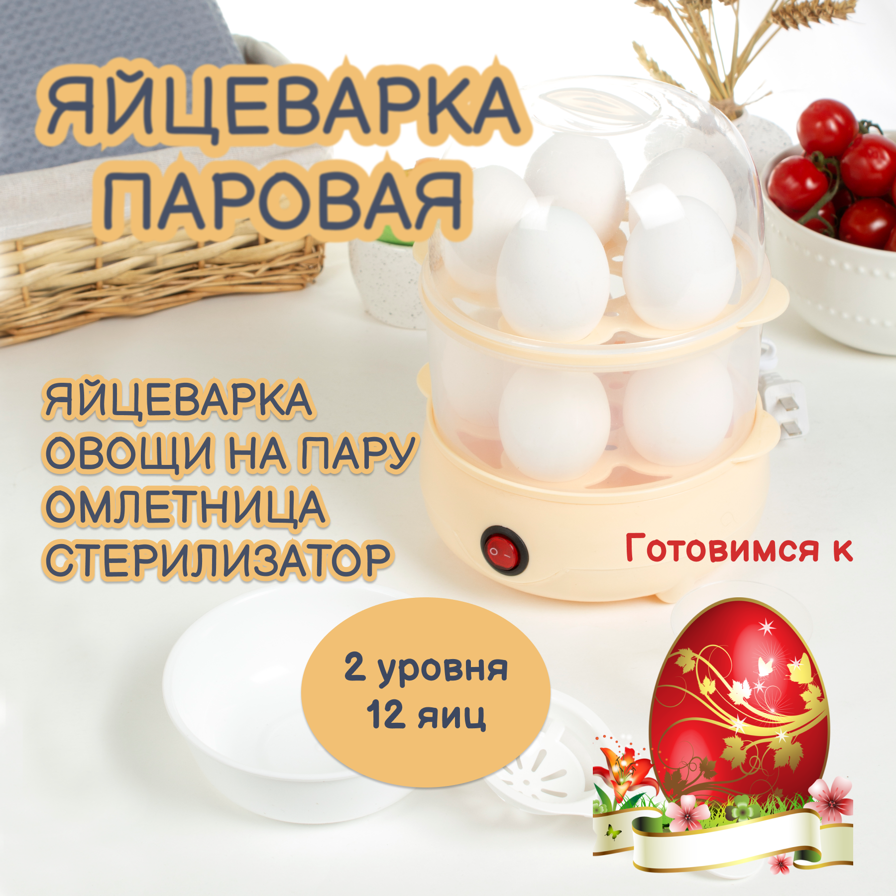 Лучшие цены. Стильная и вместительная яйцеварка, в основе работы принцип готовки на пару. Яйцеварка имеет 2 уровня и позволит приготовить на пару до 12 яиц, овощи, и даже рыбу. Простота в управлении, Вам нужно только залить воду в специальный поддон, положить яйца в углубления нажать на кнопку. Автоматический датчик отключения при выкипании воды. Модель без труда вписывается в интерьер, легка в обслуживании и хранении. Магазины в вашем городе.