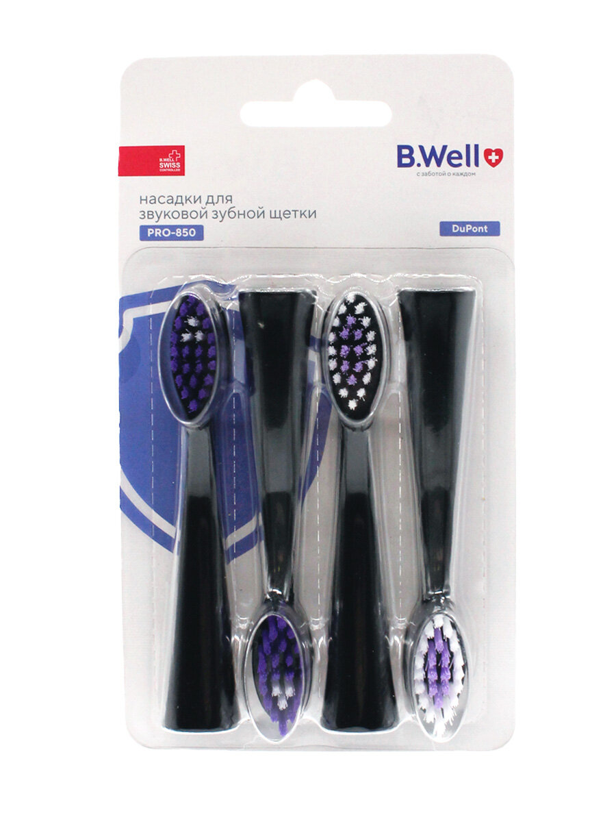 Электрические зубные щетки Сменные насадки для электрической звуковой зубной щетки B.Well PRO-850, черные, 4 шт