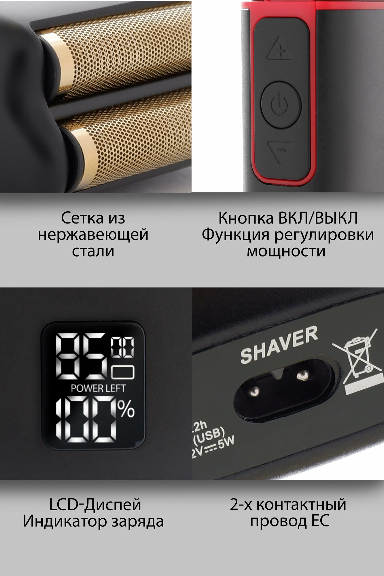 | Функции и возможности | автоопределение щетины / плавающая головка / сетка / возможность промывки водой |