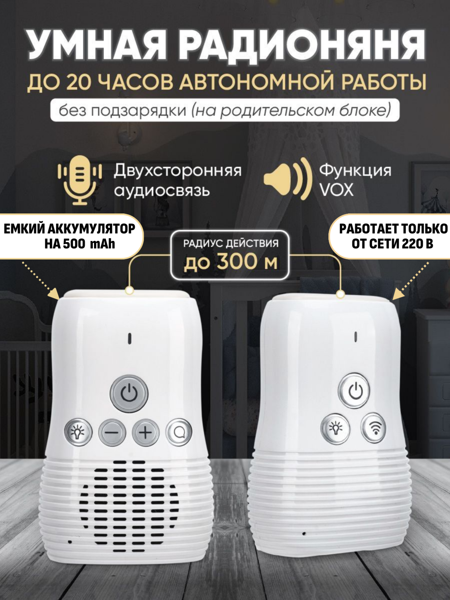 Радионяни Радионяня беспроводная с обратной связью, ночник