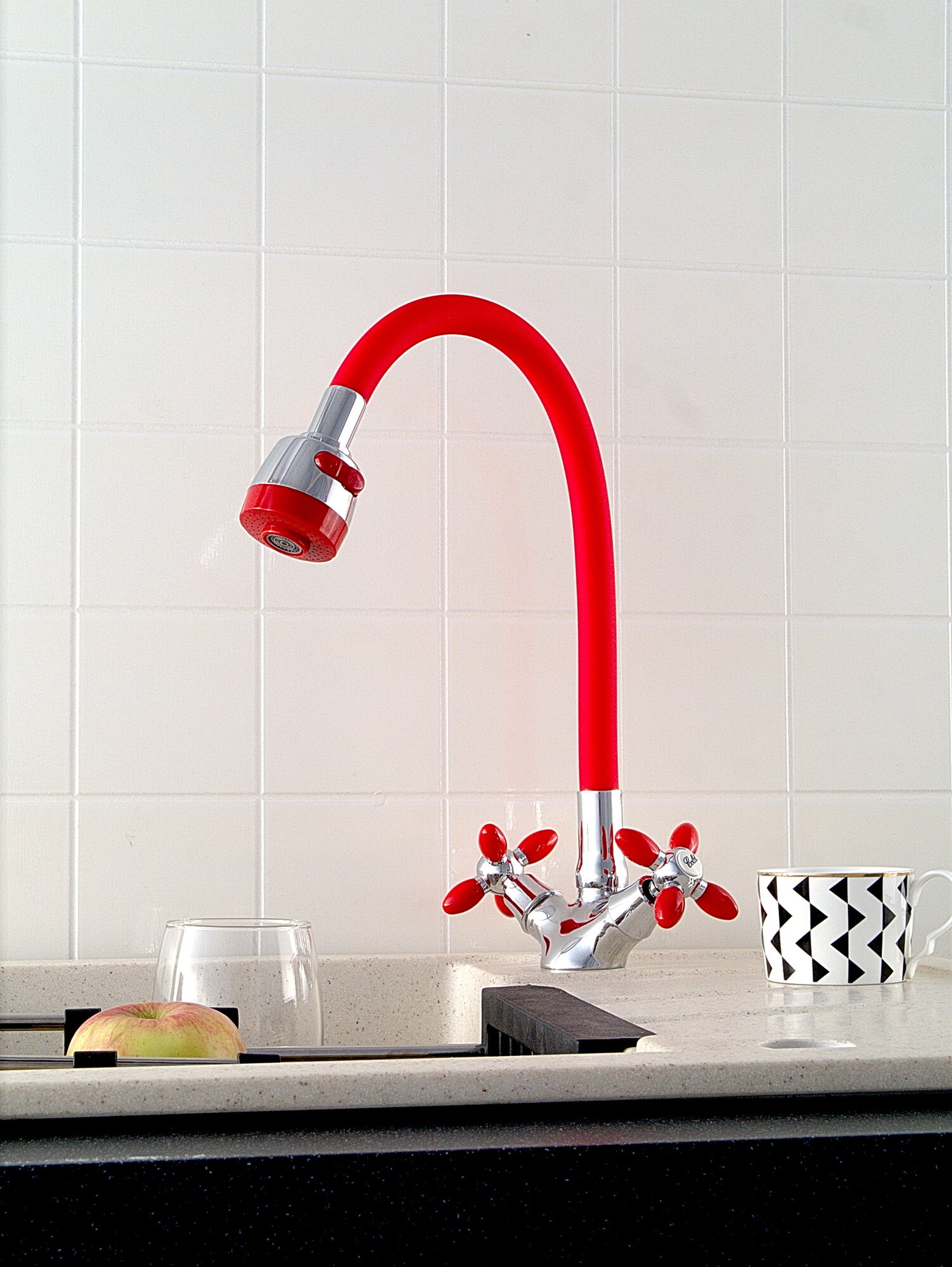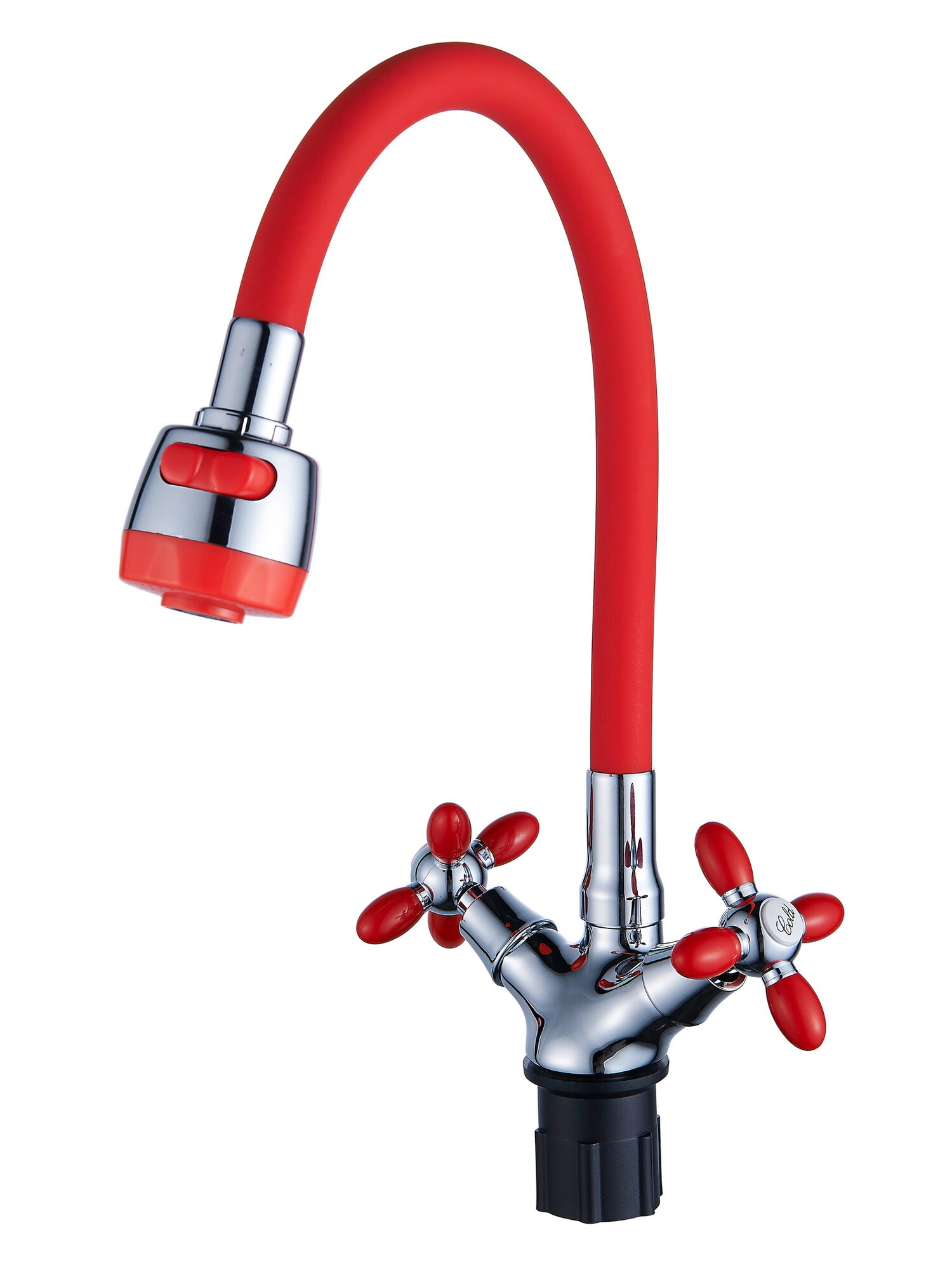 Смеситель для кухни, Эверест, гибкий излив, с кран-буксой, красный, B57-071C