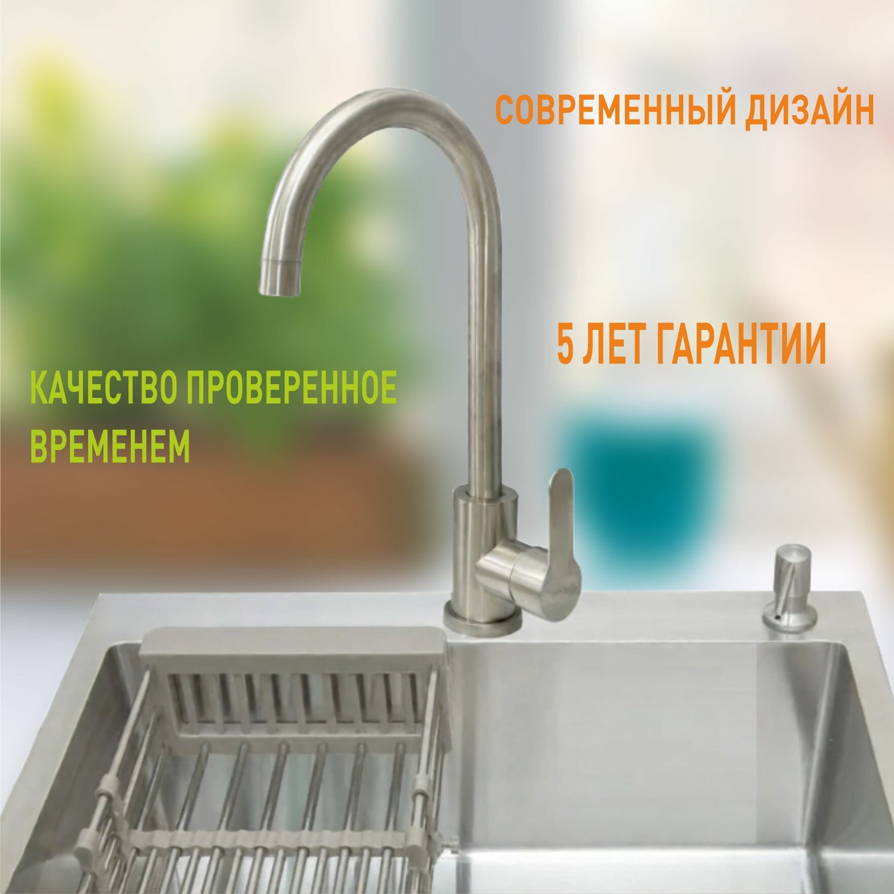 Смеситель для кухни из нержавеющей стали с поворотным изливом iBIZERi Z54001-13 с высоким поворотным изливом, цвет бежевый