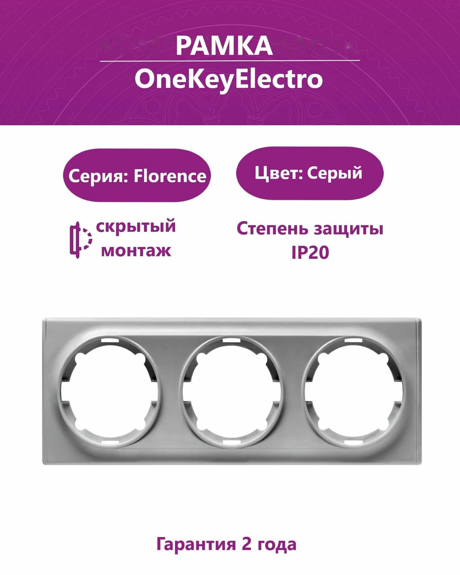 Рамки для розеток и выключателей Рамка тройная OneKeyElectro (серия Florence), цвет серый