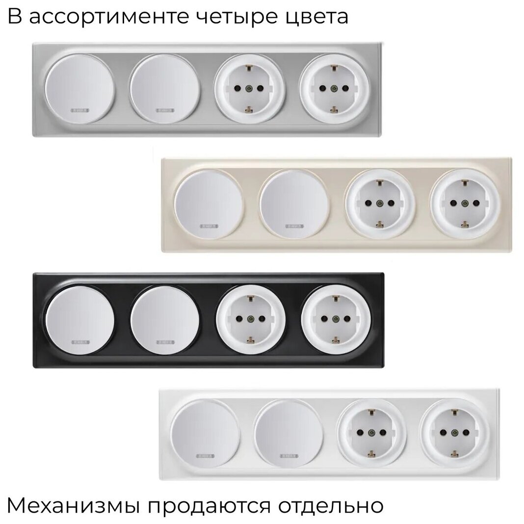 Лучшие цены. Четырехпостовая рамка OneKeyElectro серии Florence OneKeyElectro – это линейка дизайнерских электротехнических изделий, гармонично сочетающих надежность, функциональность, эстетику и эргономику. Продукция OneKeyElectro высоко оценивается покупателями благодаря качеству изделий, оригинальному дизайну и доступной цене. Пластиковая четырехпостовая рамка применяется для создания комбинаций из четырех любых механизмов OneKeyElectro. Рамка изначально предназначена для горизонтального расположения. Магазины в вашем городе.