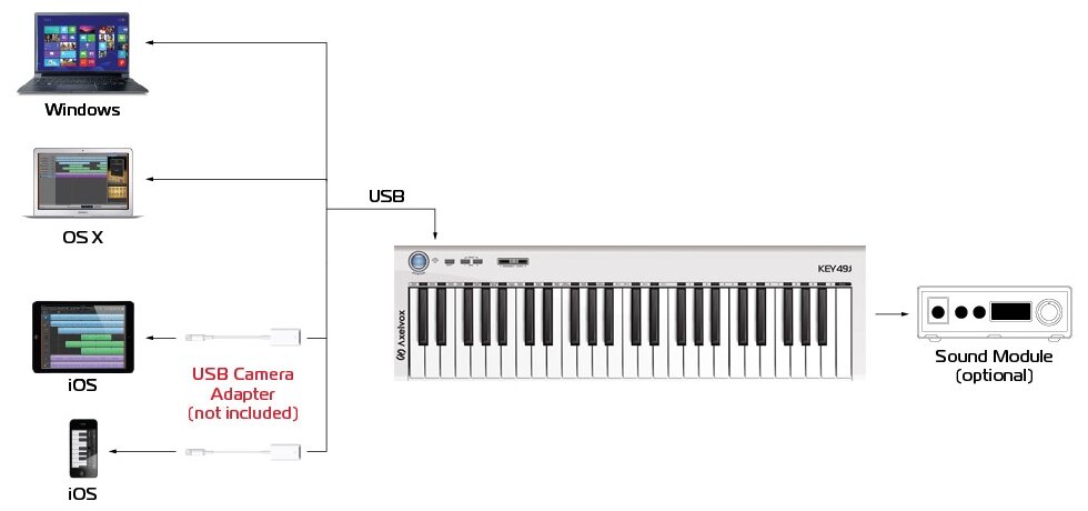 MIDI-клавиатуры Axelvox KEY49j White динамическая MIDI клавиатура USB, 4-октавная (49 клавиш)