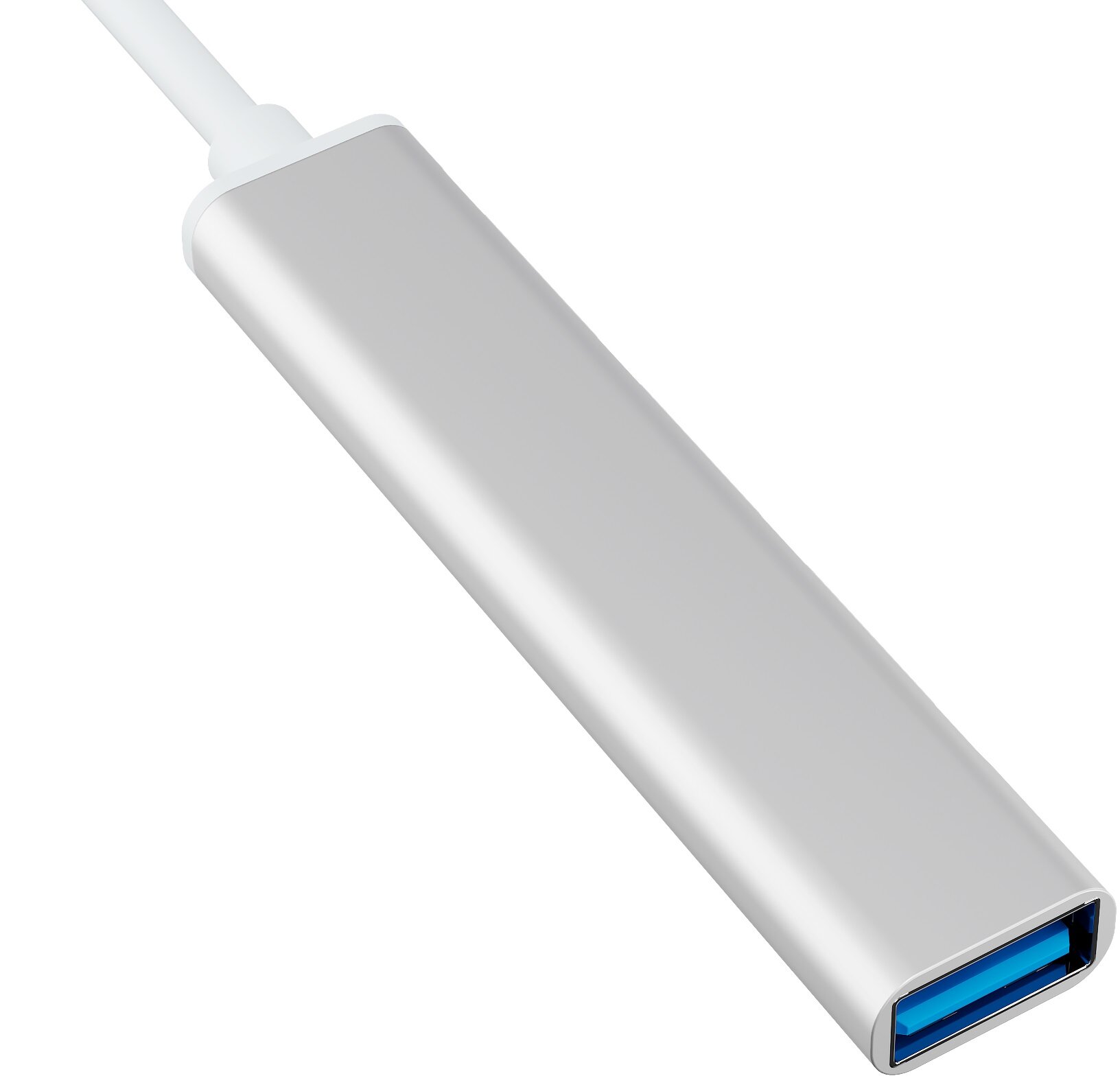 Картридеры и USB-хабы Type-C - концентратор, разветвитель, хаб GSMIN B15 3x USB 2.0 + USB 3.0 переходник, адаптер (23 см) (Серебристый)