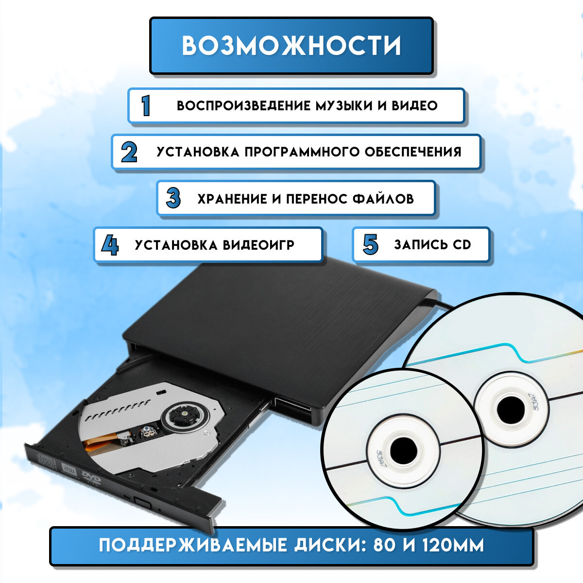 CD-проигрыватели Внешний CD-ROM/RW, DVD-ROM/RW привод / оптический привод / внешний дисковод / DVD-RW, CD-RW, DVD/CD-ROM, DVD черный USB 3.0 USB Type-C