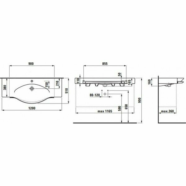 Раковина накладная Laufen Palace 120 см, 8.1270.4.000.104.1 с полотенцедержателем