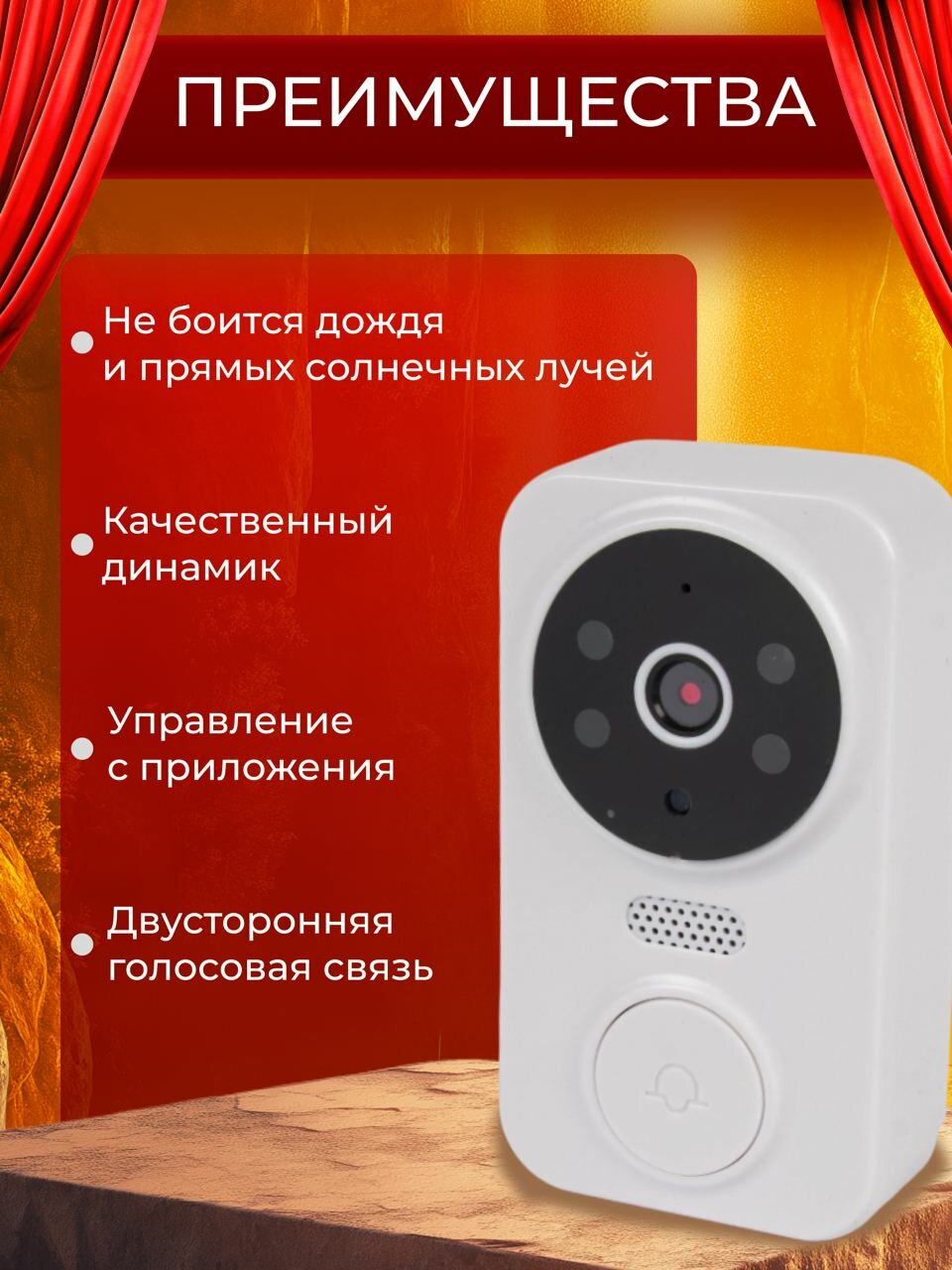 Домофоны Видеозвонок беспроводной на дверь WI-FI / Визуальный домофон с дистанционным управлением белый