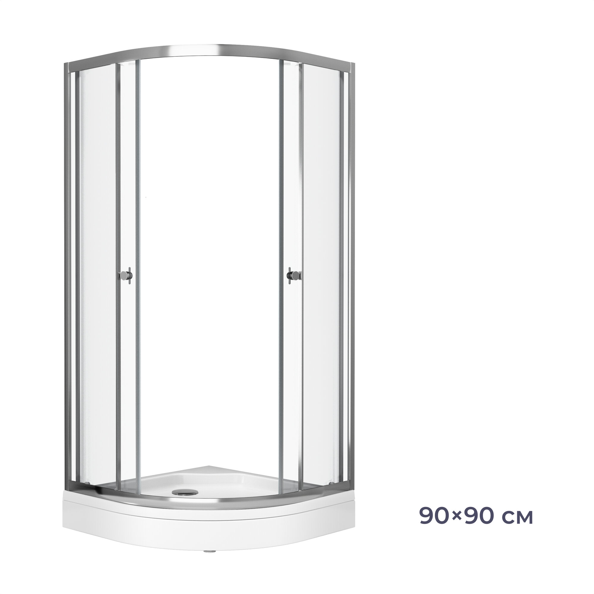 Душевые кабины Душевой уголок с поддоном Homsly, хром, полукруглый 90*90 см, коллекция Basic, 4H-016-CR90-BSC