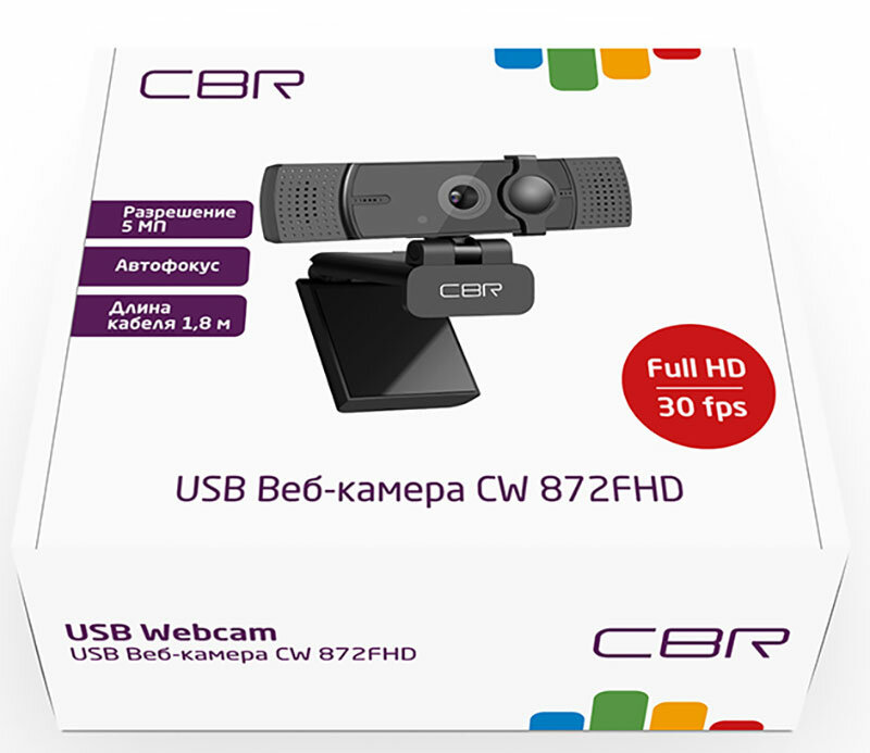 WEB-камеры Cbr Цифровая камера CW 872FHD Black, Веб-камера с матрицей 5 МП, разрешение видео 1920х1080, USB 2.0, встроенный микрофон с шумоподавлением,