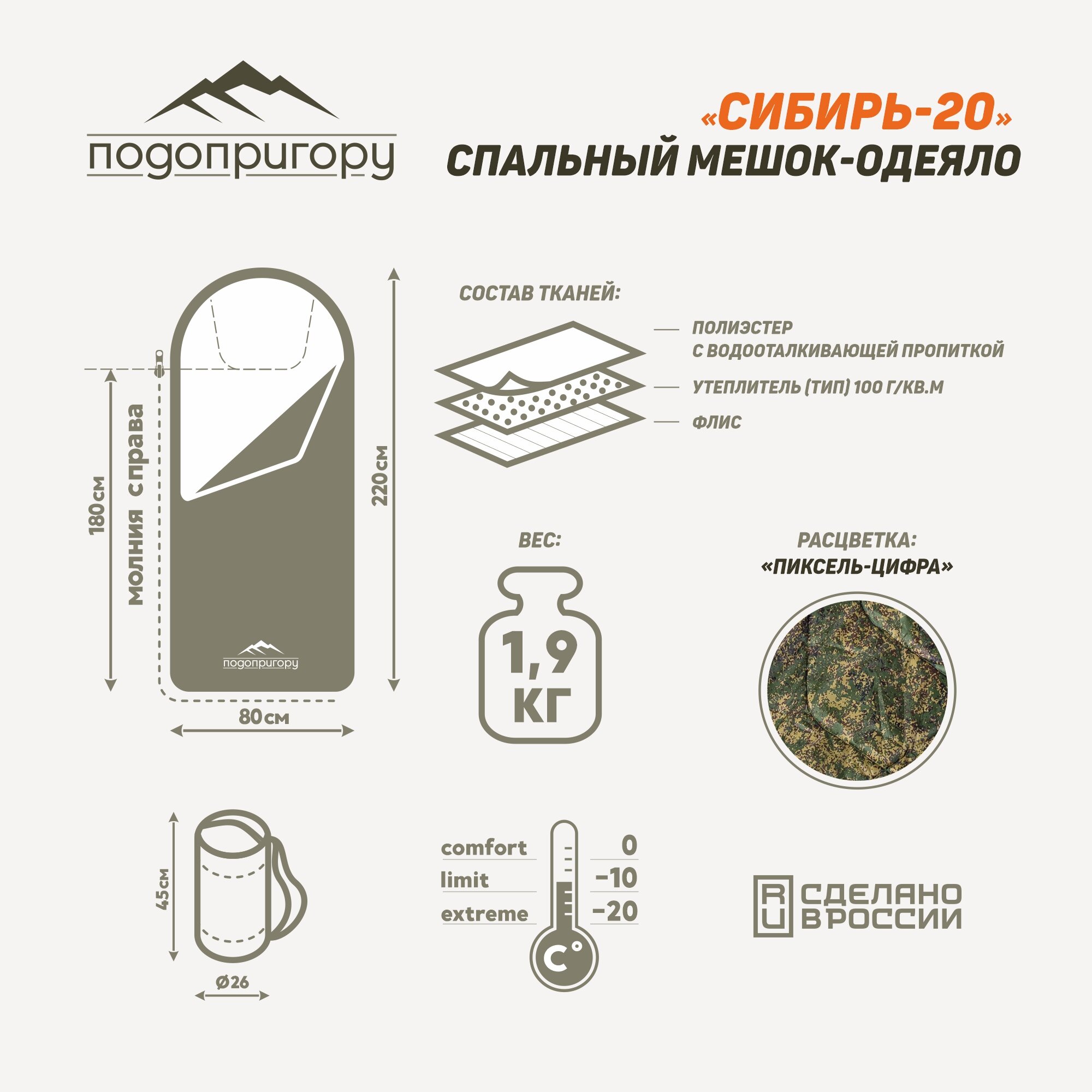 Спальные мешки Спальник зимний до -20 с подголовником цвет Цифра-Пиксель
