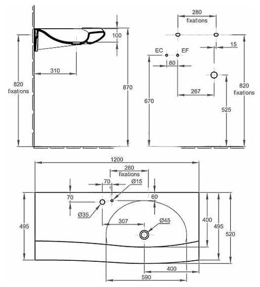 Умывальник Раковина Jacob Delafon Stillness 120х52 см E1292-09-00