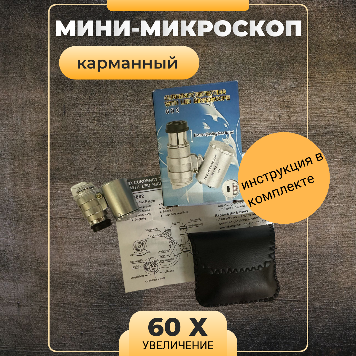 Микроскопы Мини-микроскоп 60x, с подсветкой (2 LED) и ультрафиолетом (9882)