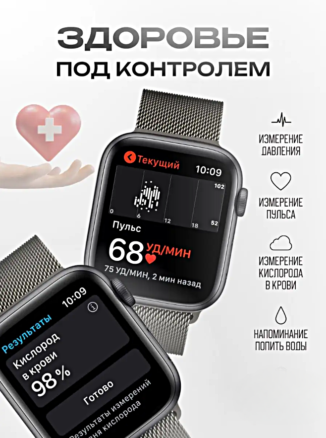 | Возможные измерения | пульсометр / давление (тонометр) / уровень кислорода в крови / кол-во шагов / пройденное расстояние / скорость движения / расход энергии (калории) / время активности / отслеживание сна |