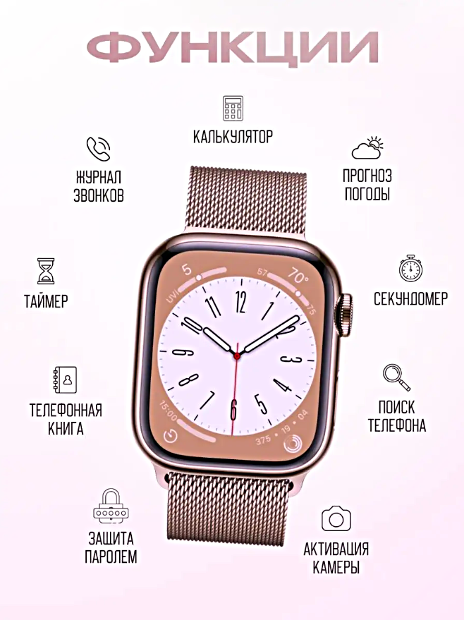 Смарт часы и фитнес браслеты Умные часы X9 PRO Premium Smart Watch 47MM, iOS, Android, 2 ремешка в комплекте, Bluetooth звонки, Уведомления, Игры, Шагомер, Розовый