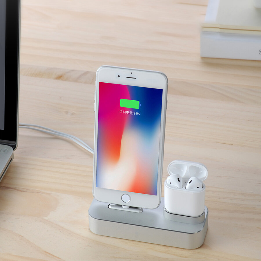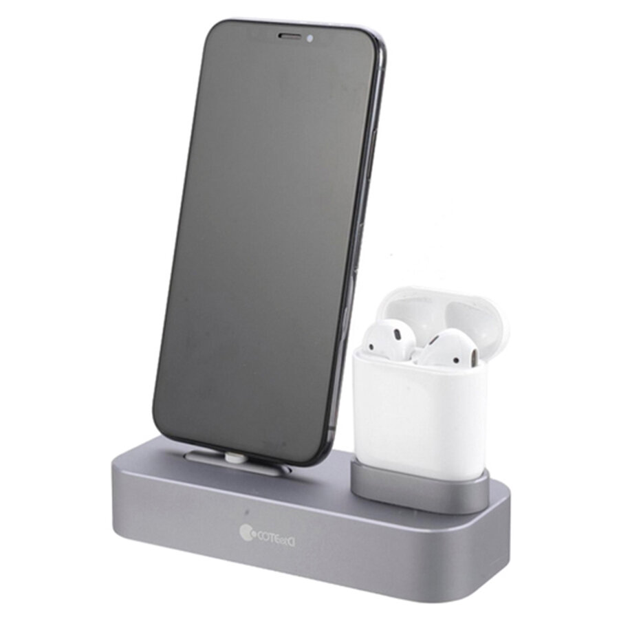 Настольная станция COTEetCI CS7205-TS Base 22 2-in-1 + Lightning + AirPods, серебристый