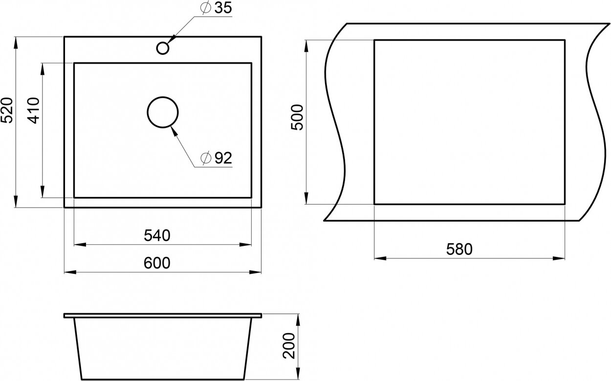 Кухонная мойка GRANULA 6001, кварц, 52см х 60см